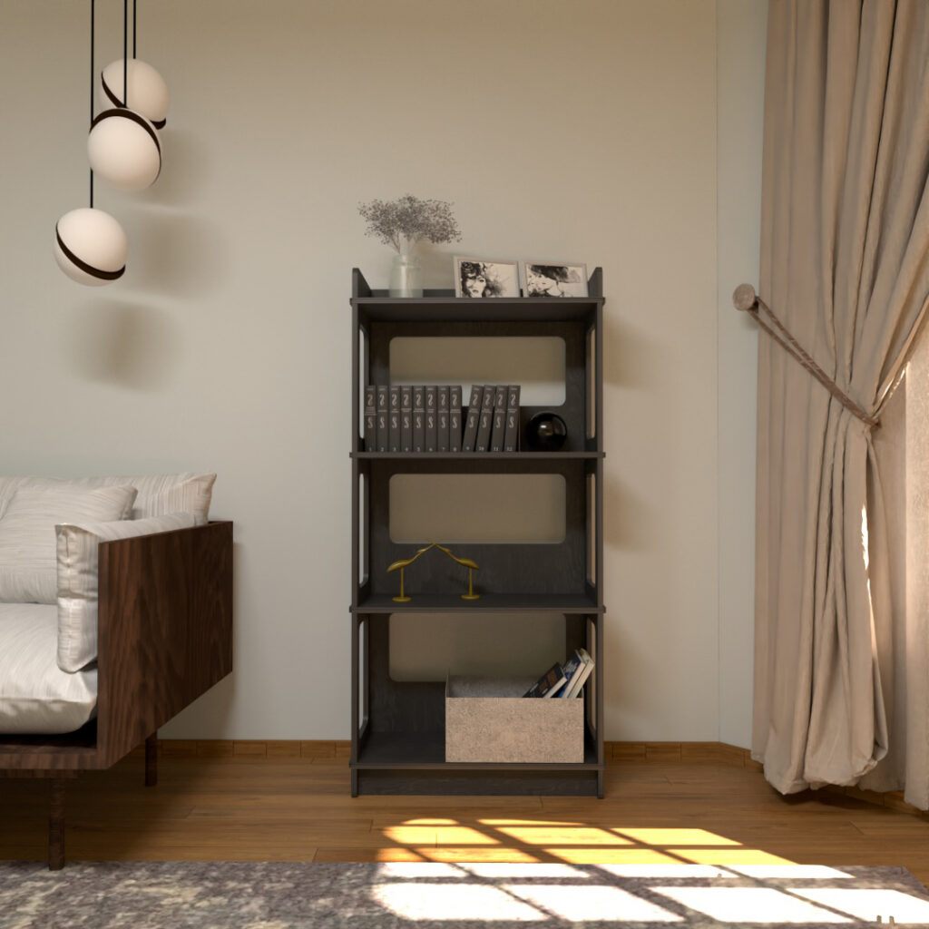 An elegant and light vertical storage system, inspired by the new way of inhabiting spaces, which has installed work in private spaces. It`s design is open and slim, which makes it possible to see what is placed on it, whether photos, plants or objects. Its horizontal shelves are framed by vertical walls that let in light, so you can leave your plants in it as well. It´s measurements are 120 cms high, by 60 cms in front and 40 cms deep, so there is enough space for books, folders and elements of a study.