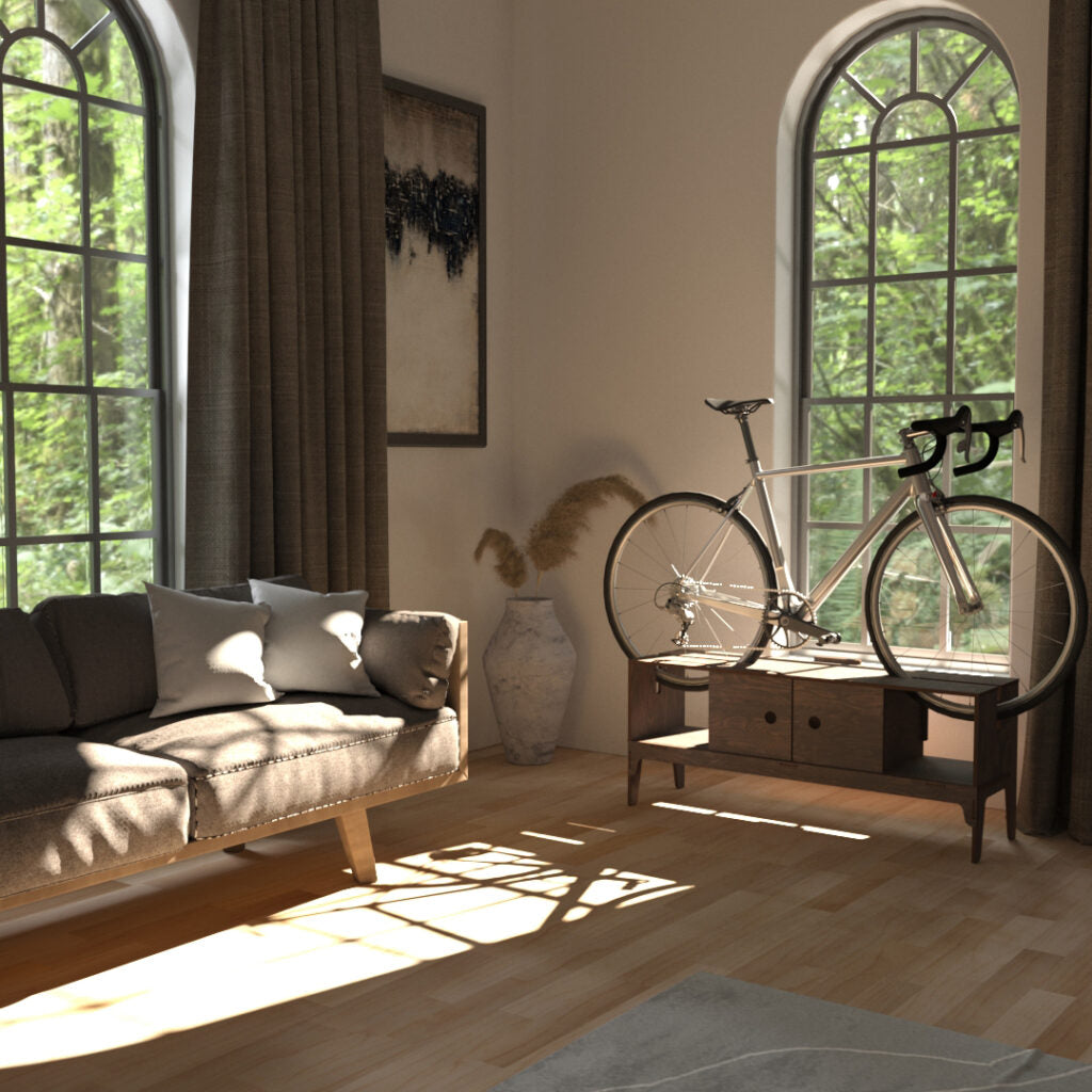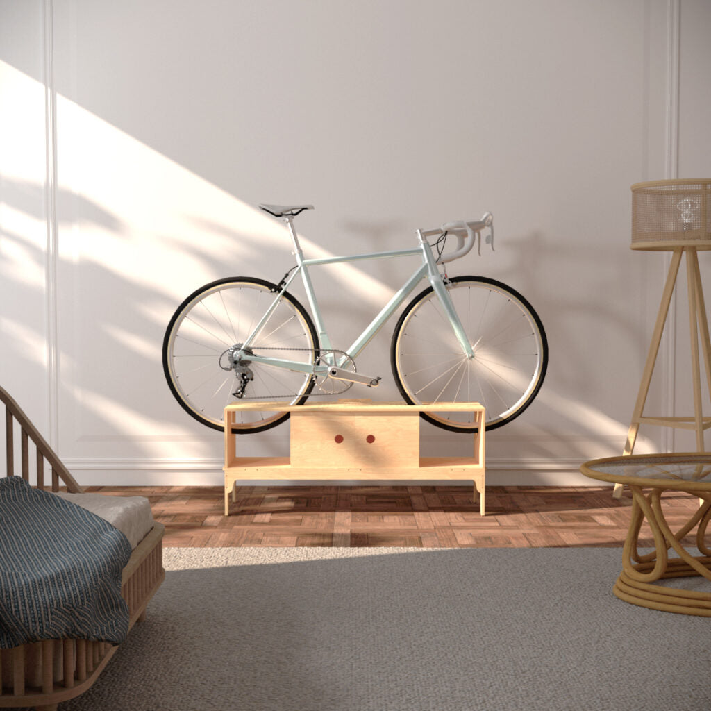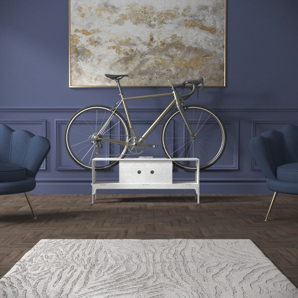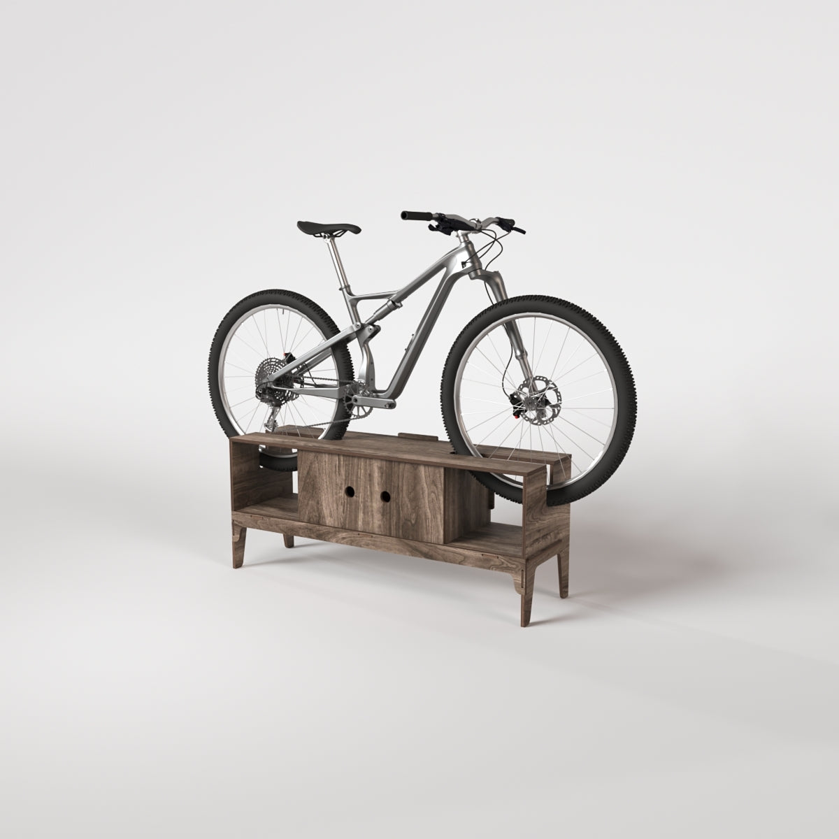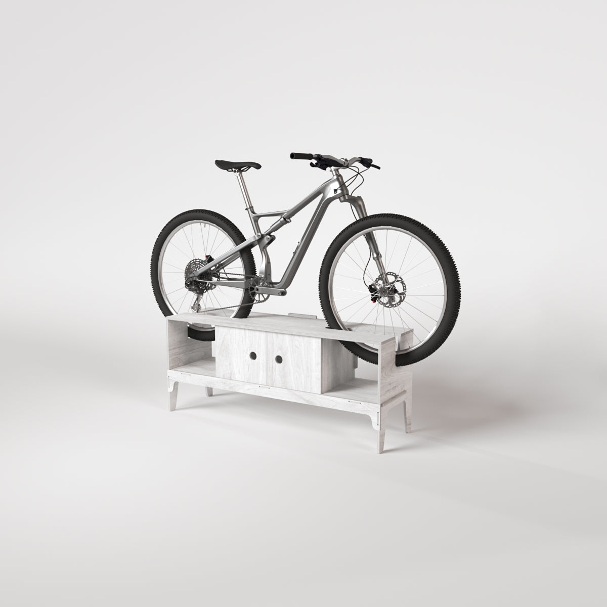 With cleverly designed slots to provide a secure and stylish resting place for your beloved bike, it adds an element of minimalist elegance to any space.