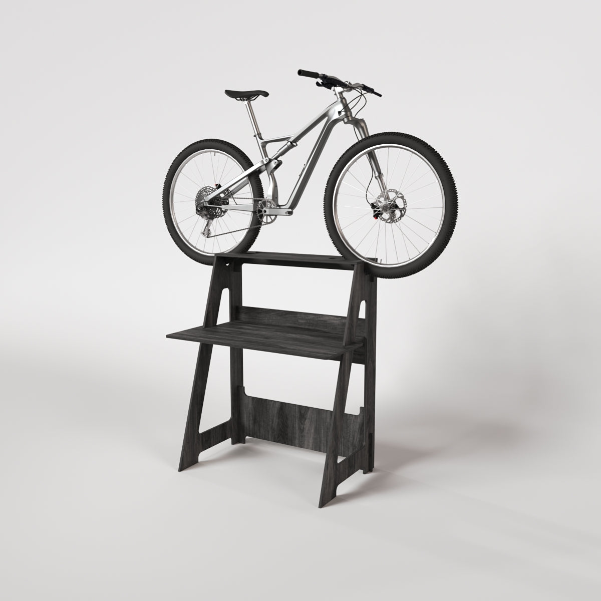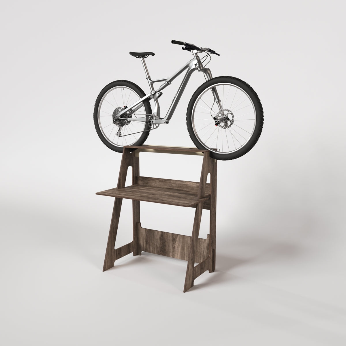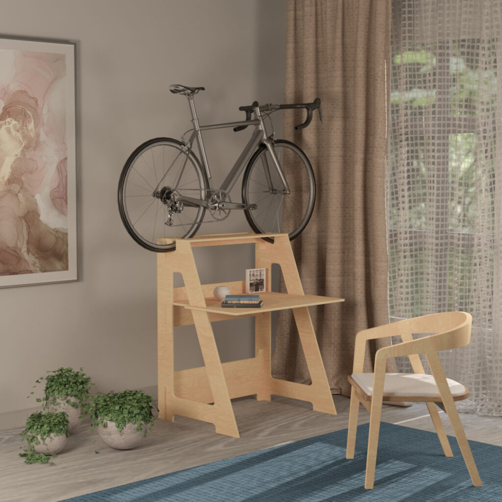 Solve your space and inspire your ideas. De5k whose dimensions are 95x112x58 cms; is an easily assembled furniture, designed to incorporate your bike firmly into your work space and daily life.