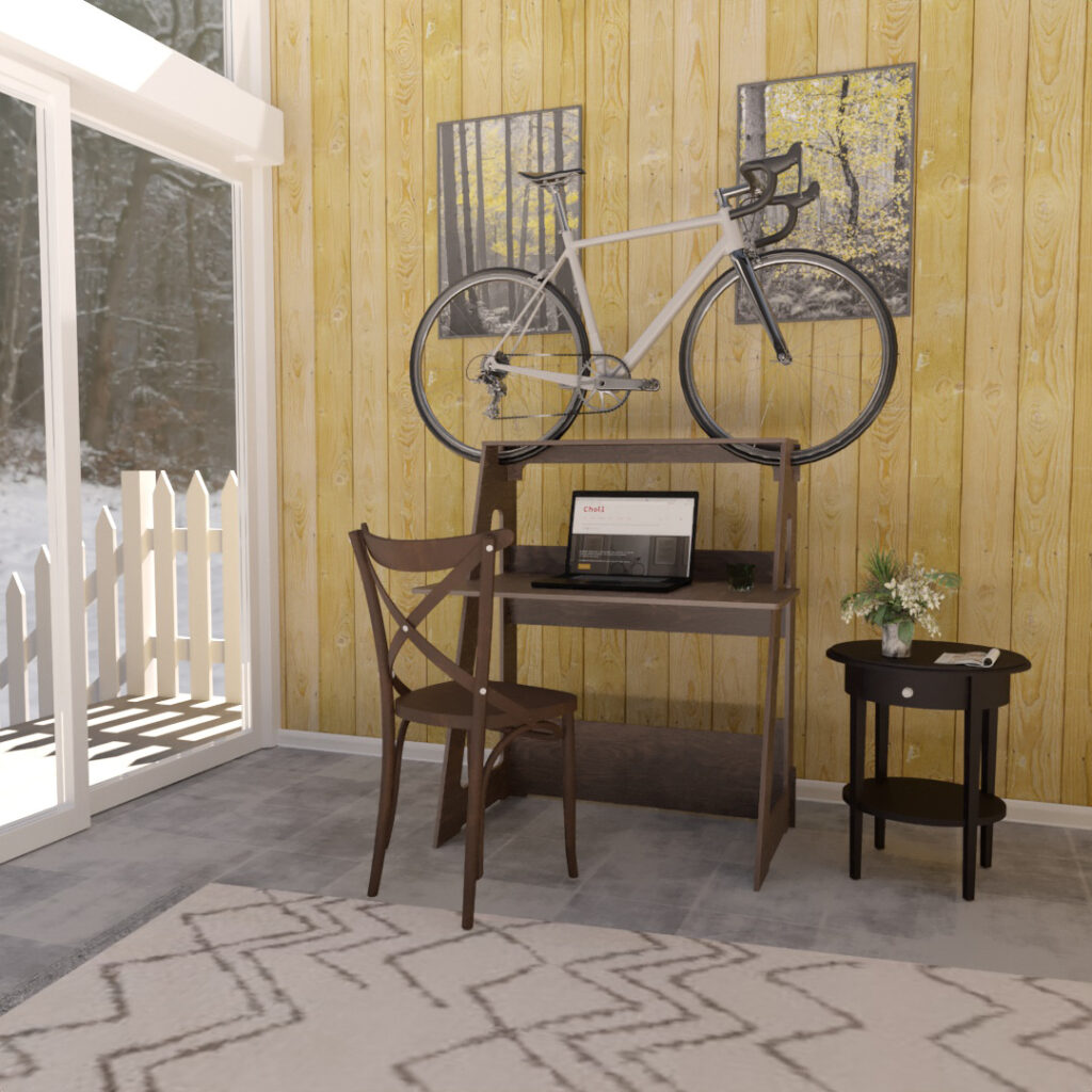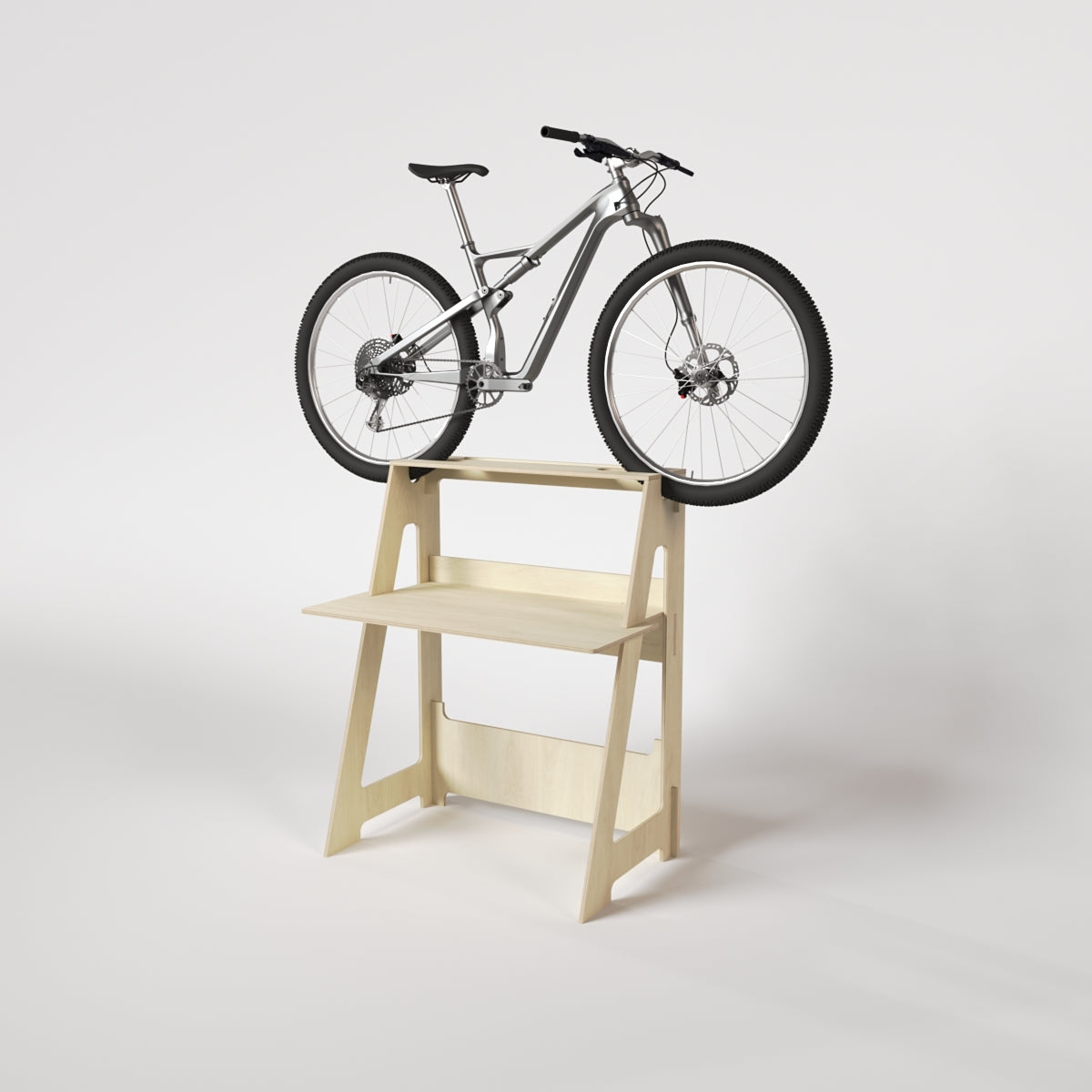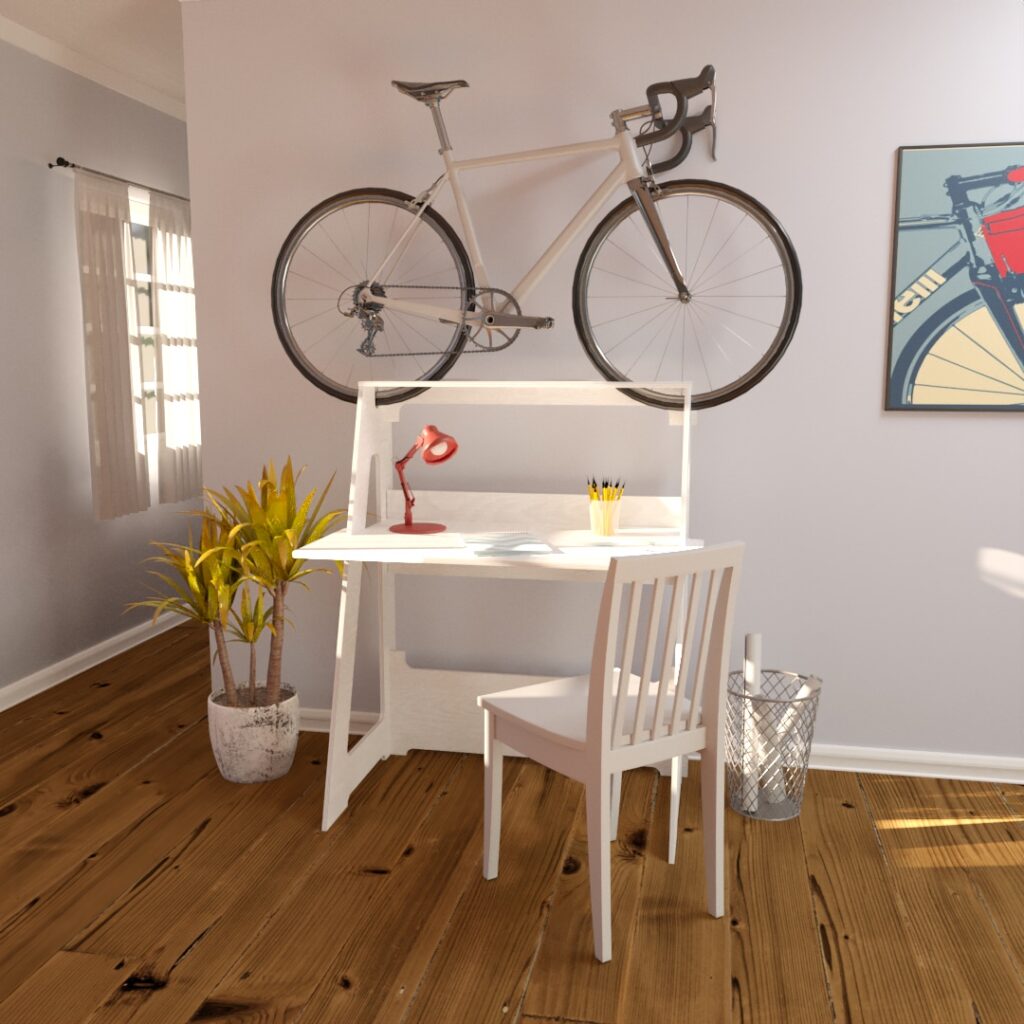 Solve your space and inspire your ideas. De5k whose dimensions are 95x112x58 cms; is an easily assembled furniture, designed to incorporate your bike firmly into your work space and daily life.