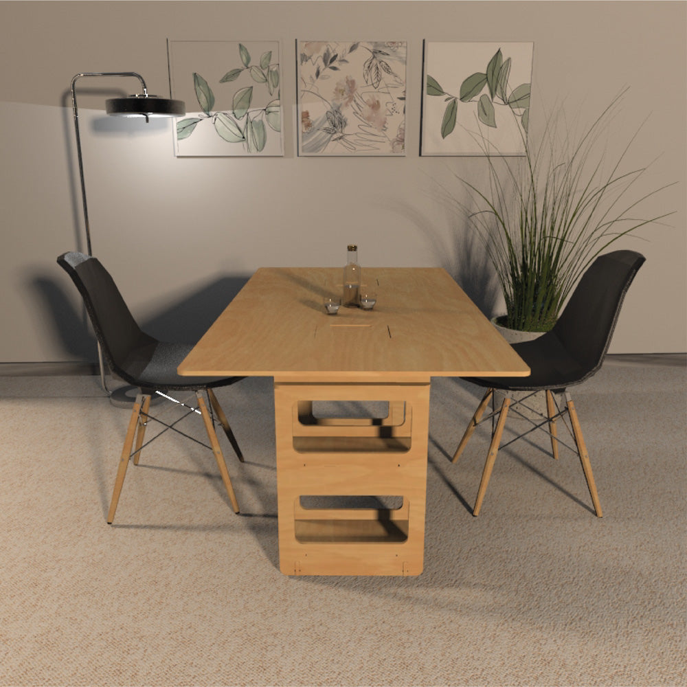 A functional and generous desk, designed to share in case you have company or work alone with great comfort. Inspired by the new current habits of incorporating work in our intimate space.