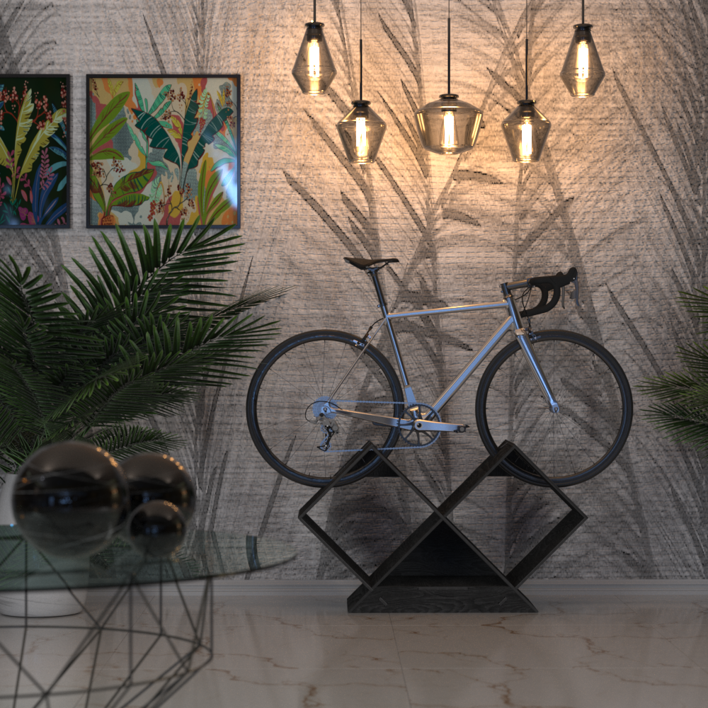 The Double Diamond bike stand is a geometrically inspired design for riders with a taste for modern aesthetics. Its sleek diamond-shaped compartments create the illusion of weightless levitation, while practical storage beneath to creates a truly unique bicycle display stand.