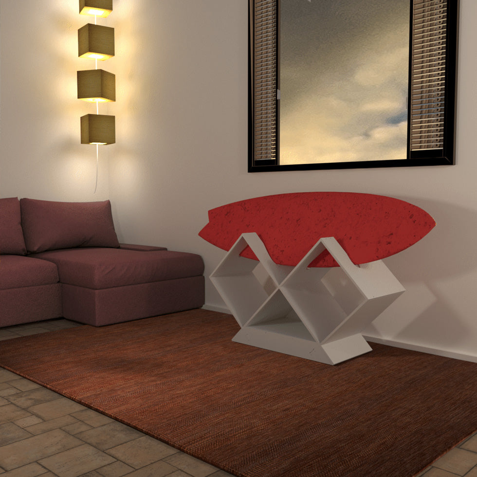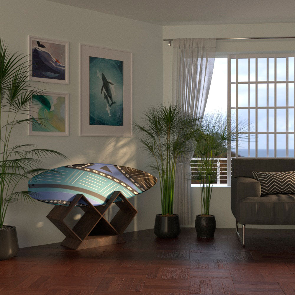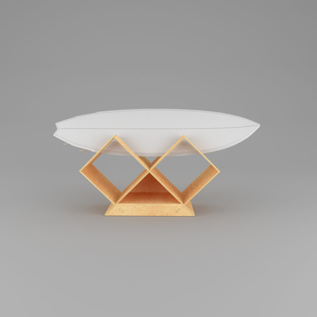 Showcase your prized surfboard in an impressive fashion with the double diamond surfboard stand. This display stand elevates your board for easy viewing with it's sleek diamond shaped compartments while also providing storage for all your surf related accessories.